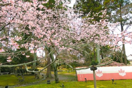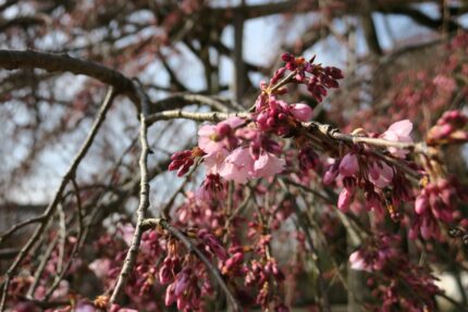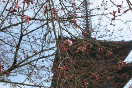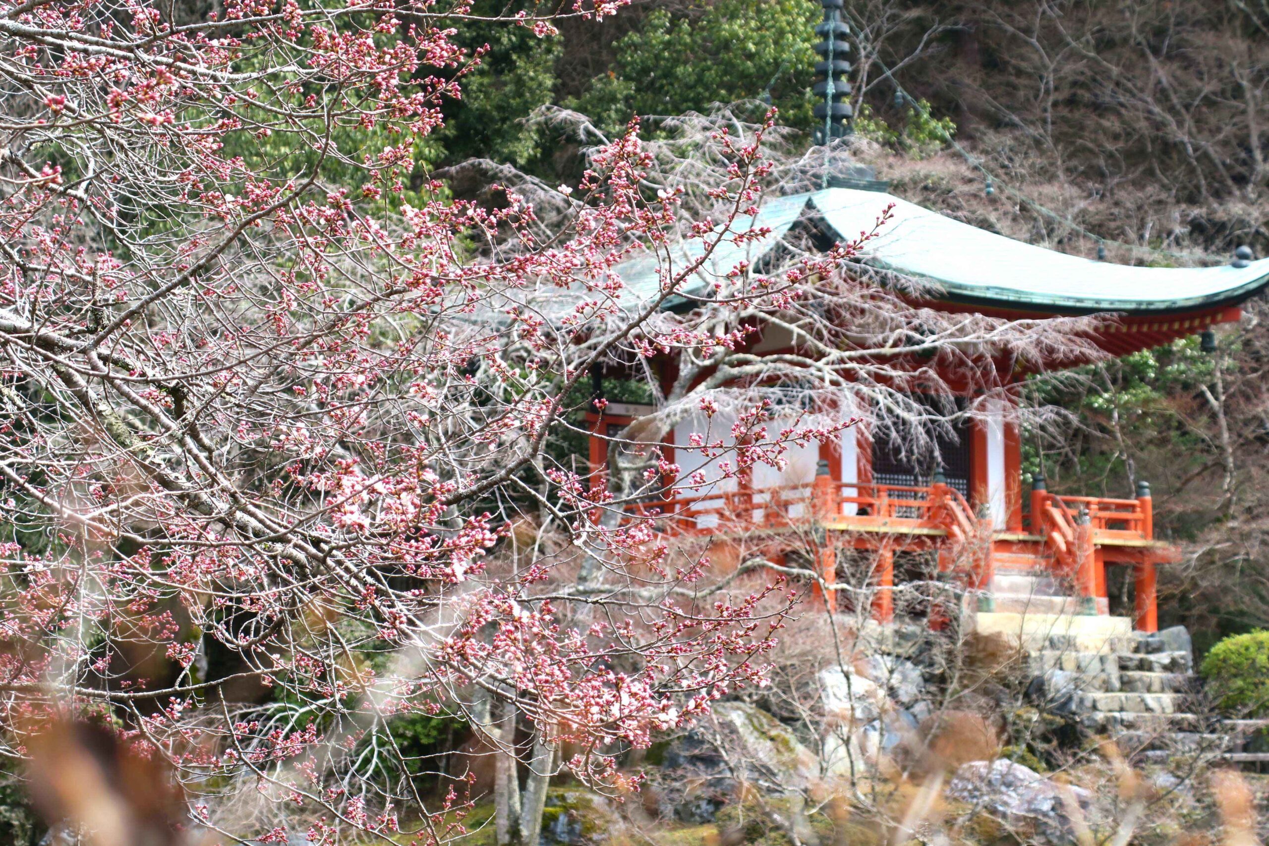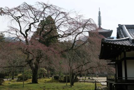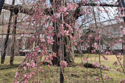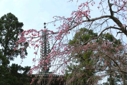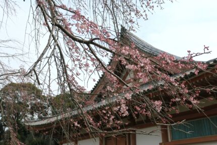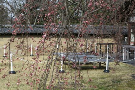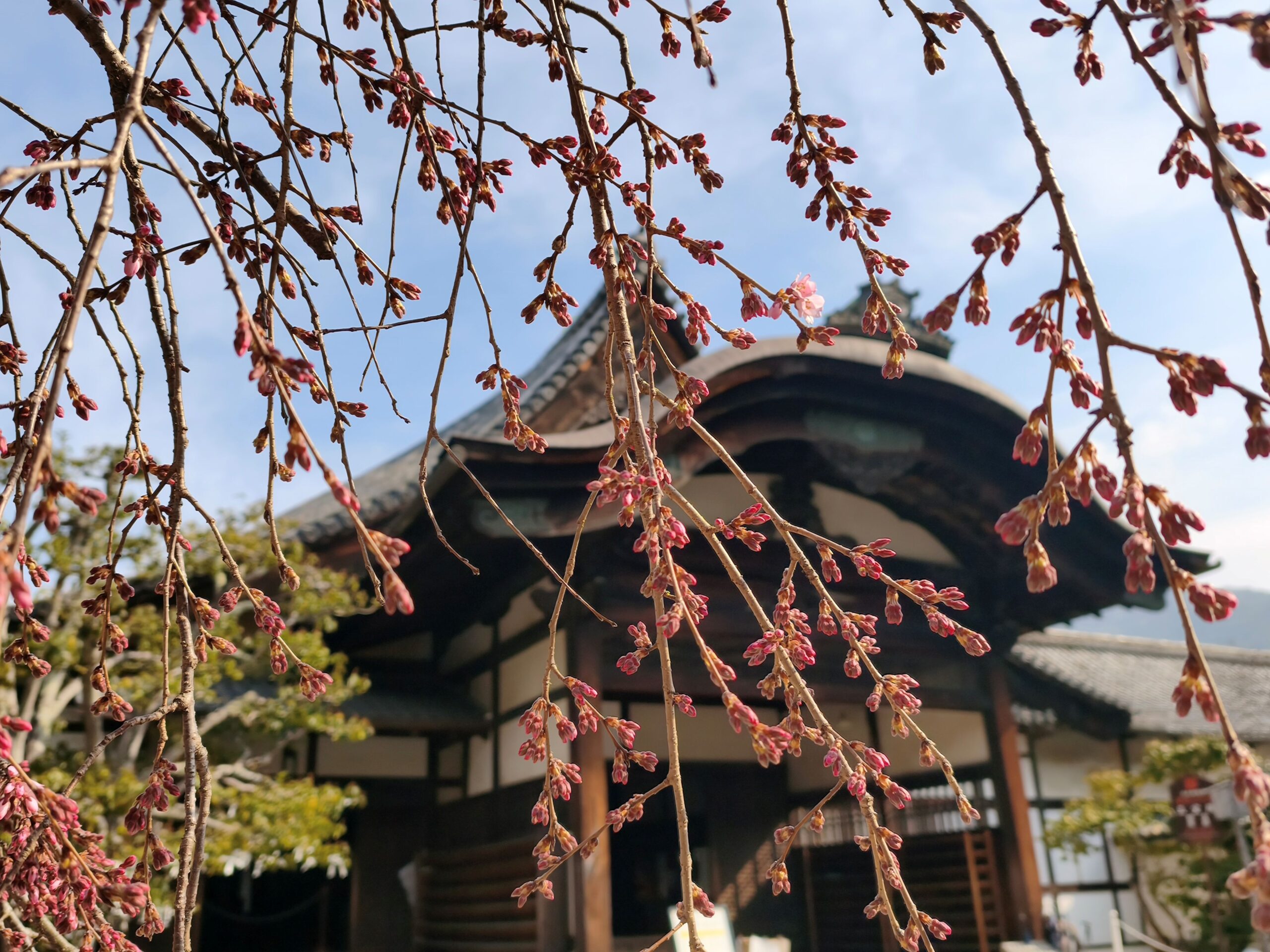 境内のしだれ桜も咲き始めてきました。三宝院の憲深林苑の河津桜は五分咲きで、本日より憲深林苑も拝観できるようになっています。ソメイヨシノはまだ蕾です。