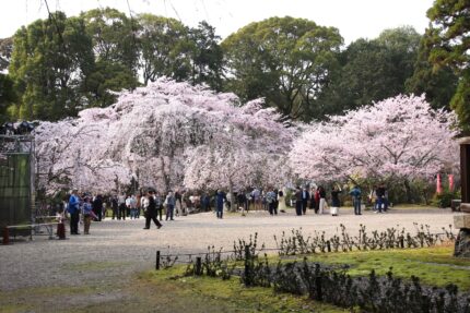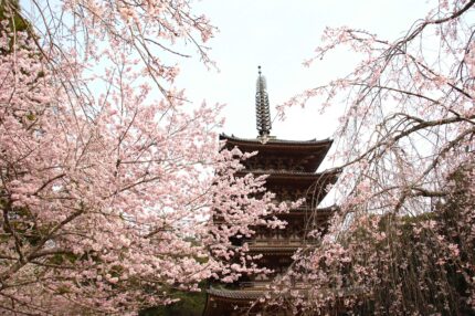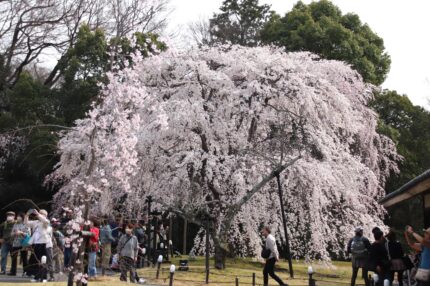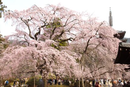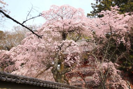 醍醐寺境内のしだれ桜は今が見頃です。ソメイヨシノも5分から7分咲きでもうすぐ見頃を迎えます。オオシマザクラや紅しだれもちらほらと咲き始めてきました。五重塔周辺、霊宝館庭園は今が特に華やかですよ。