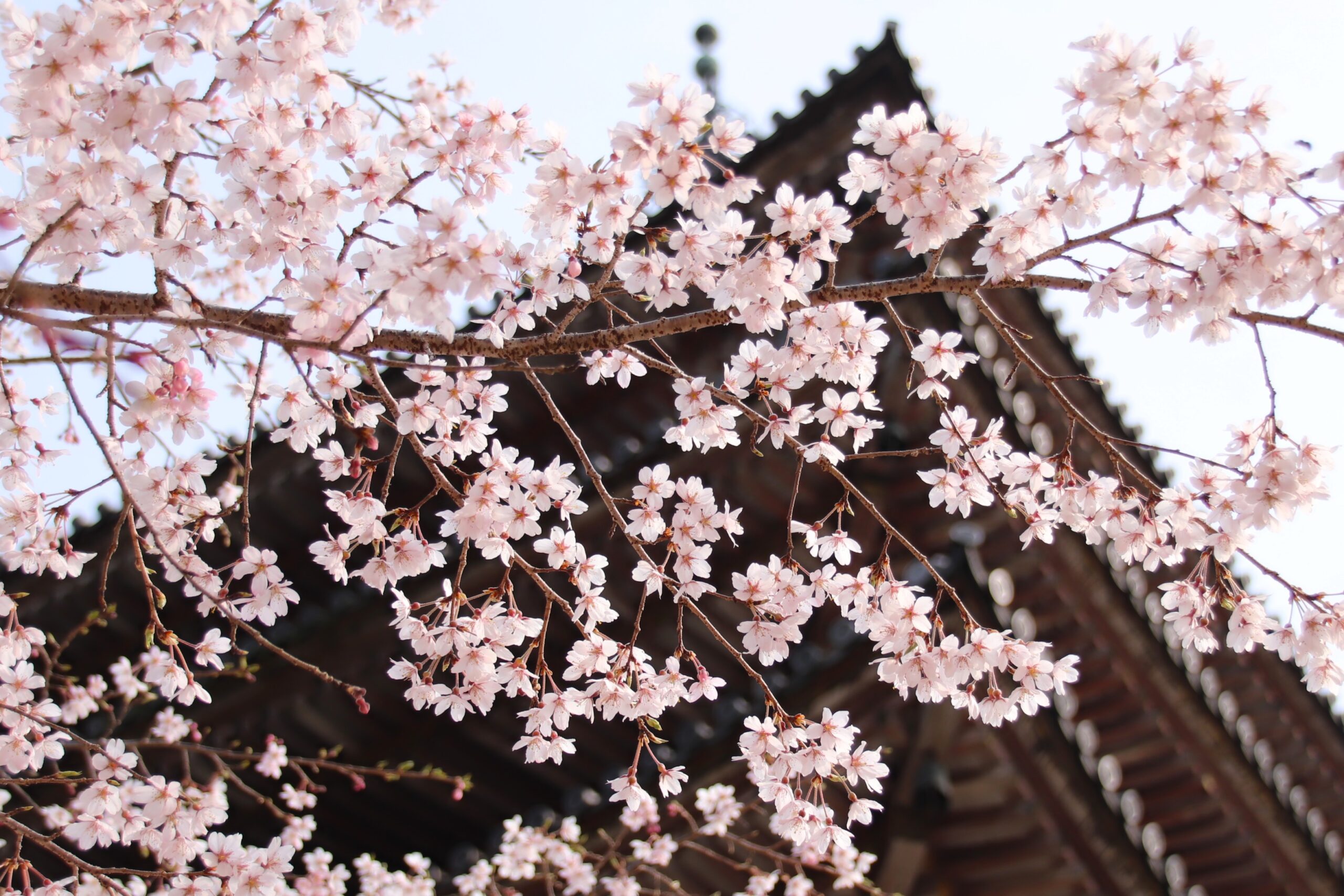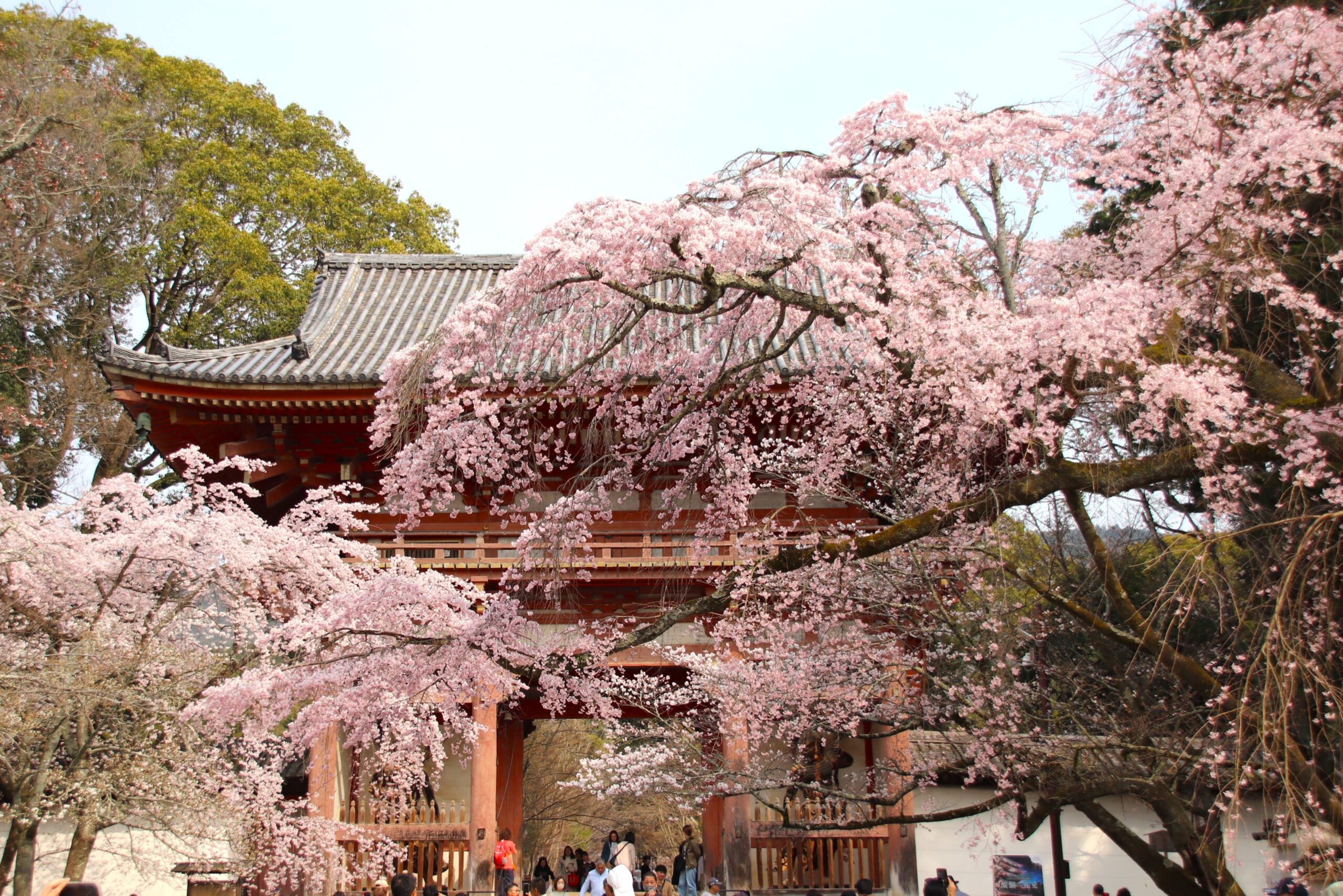 醍醐寺境内のしだれ桜は今が見頃です。ソメイヨシノも5分から7分咲きでもうすぐ見頃を迎えます。オオシマザクラや紅しだれもちらほらと咲き始めてきました。五重塔周辺、霊宝館庭園は今が特に華やかですよ。