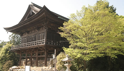 清瀧宮拝殿(国宝)は室町時代の建物で、寝殿造りの手法を生かした気品ある風格を備えています。山腹をわずかに切り開いて前面が崖にさしかかる懸造り(かけづくり)の構造になっています。